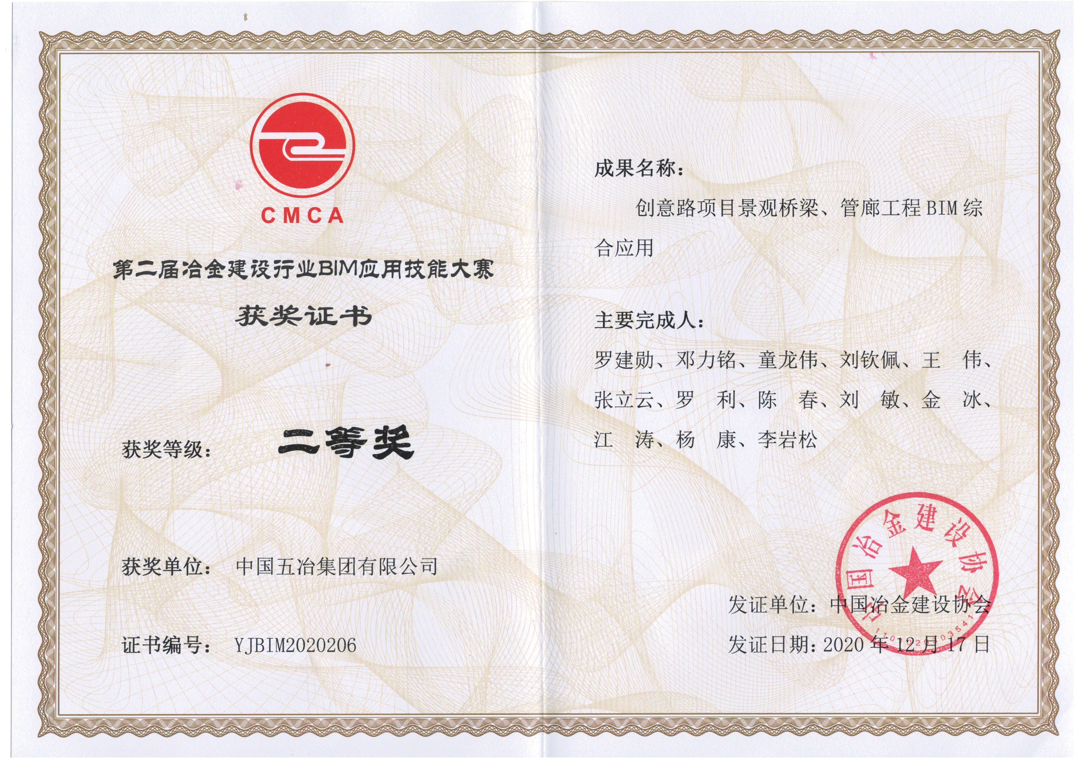創意路項目景觀橋梁、管廊工程BIM綜合應用——第二屆冶金建設行業BIM大賽二等獎