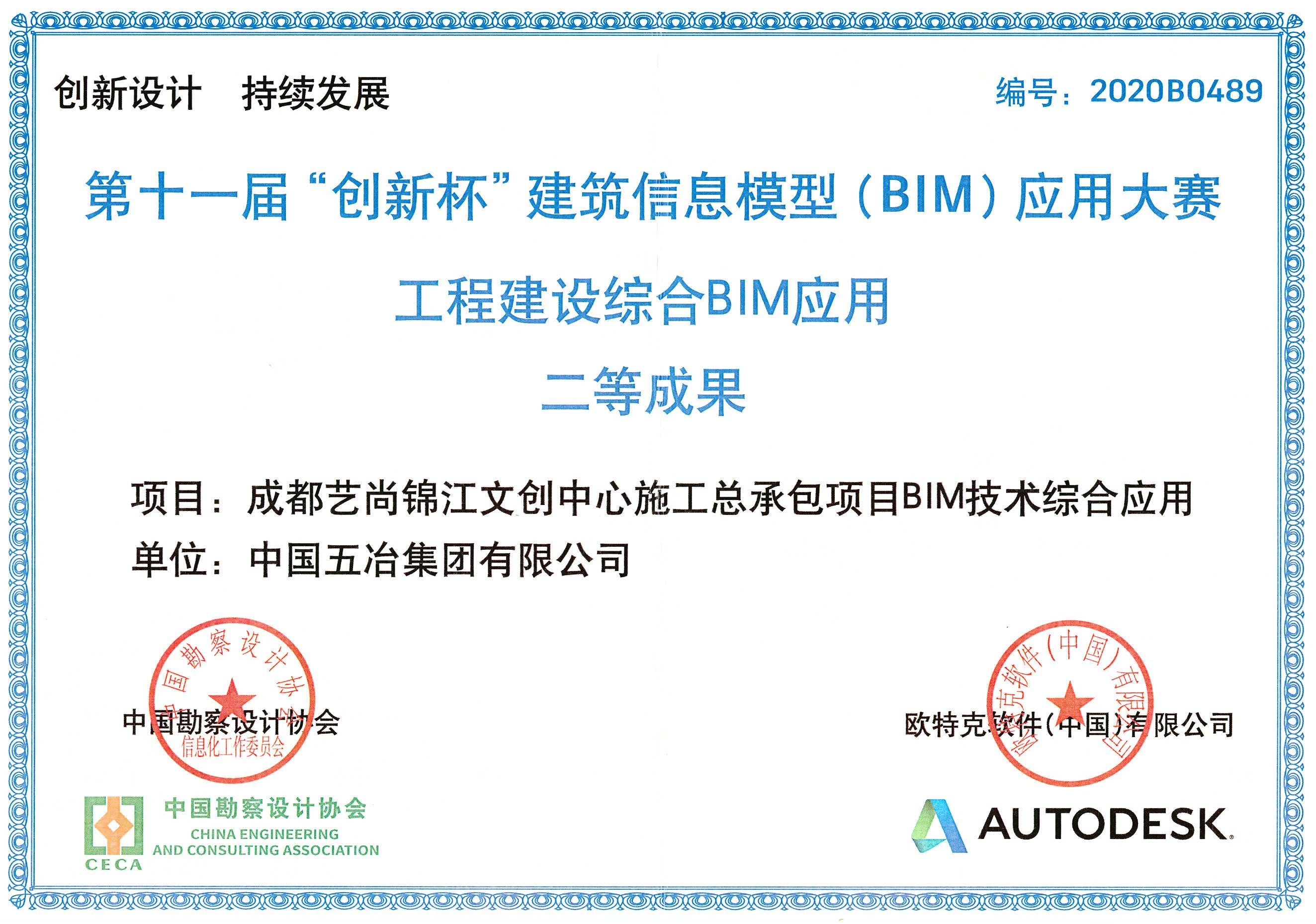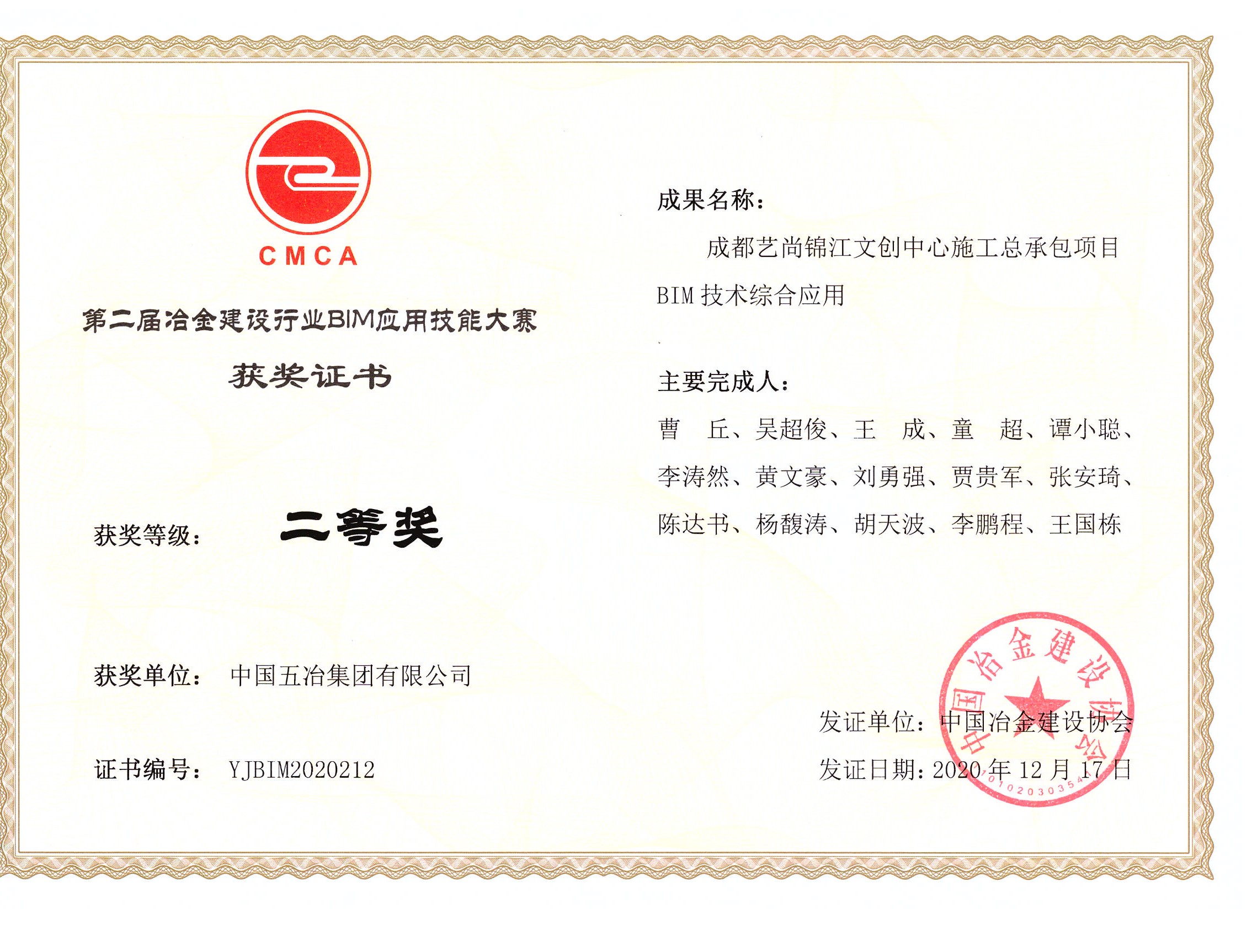 成都藝尚錦江文創中心施工總承包項目BIM技術綜合應用——第二屆冶金建設行業BIM大賽二等獎