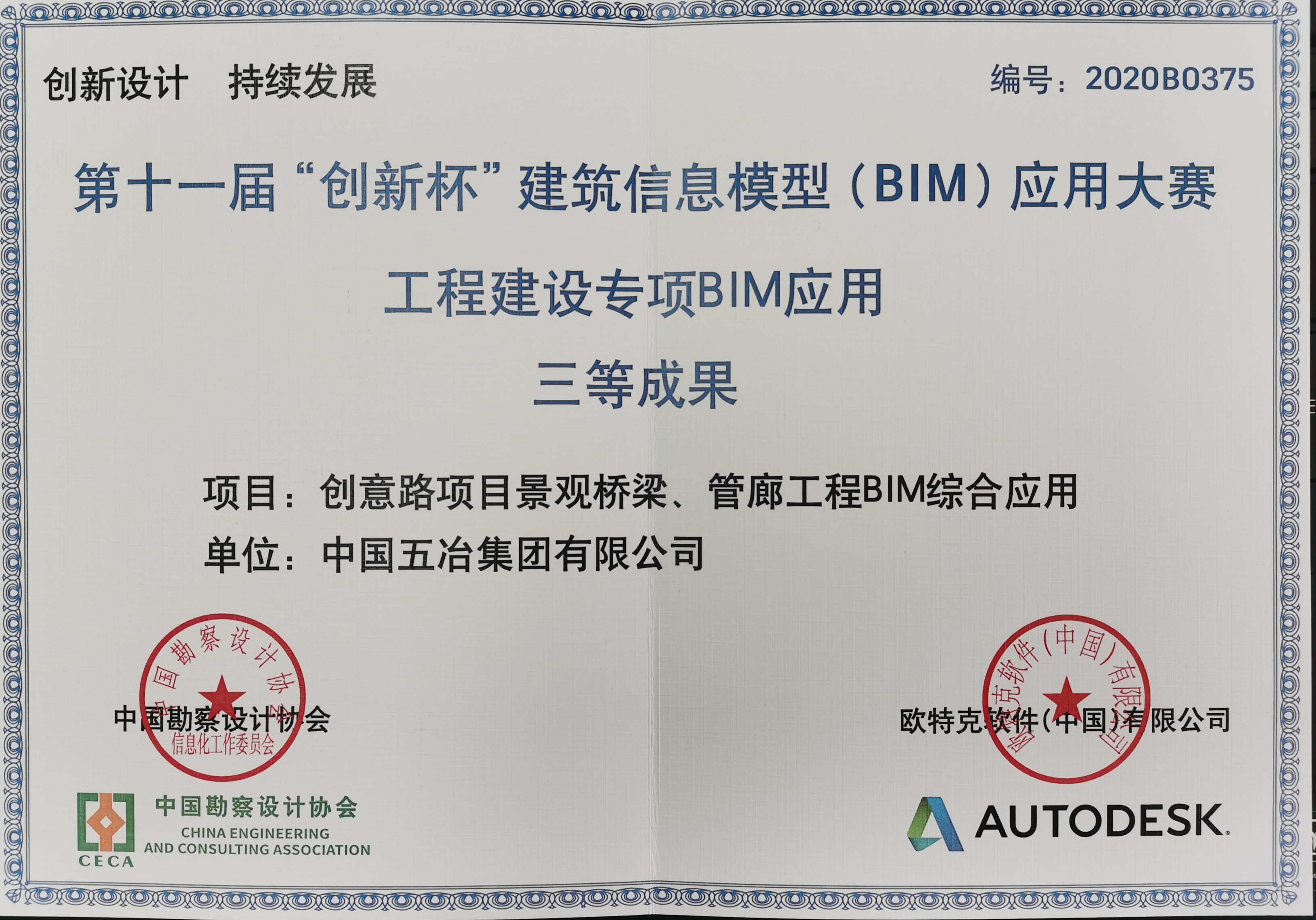 創意路項目景觀橋梁、管廊工程BIM綜合應用——第十一屆創新杯三等獎(工程建設專項)
