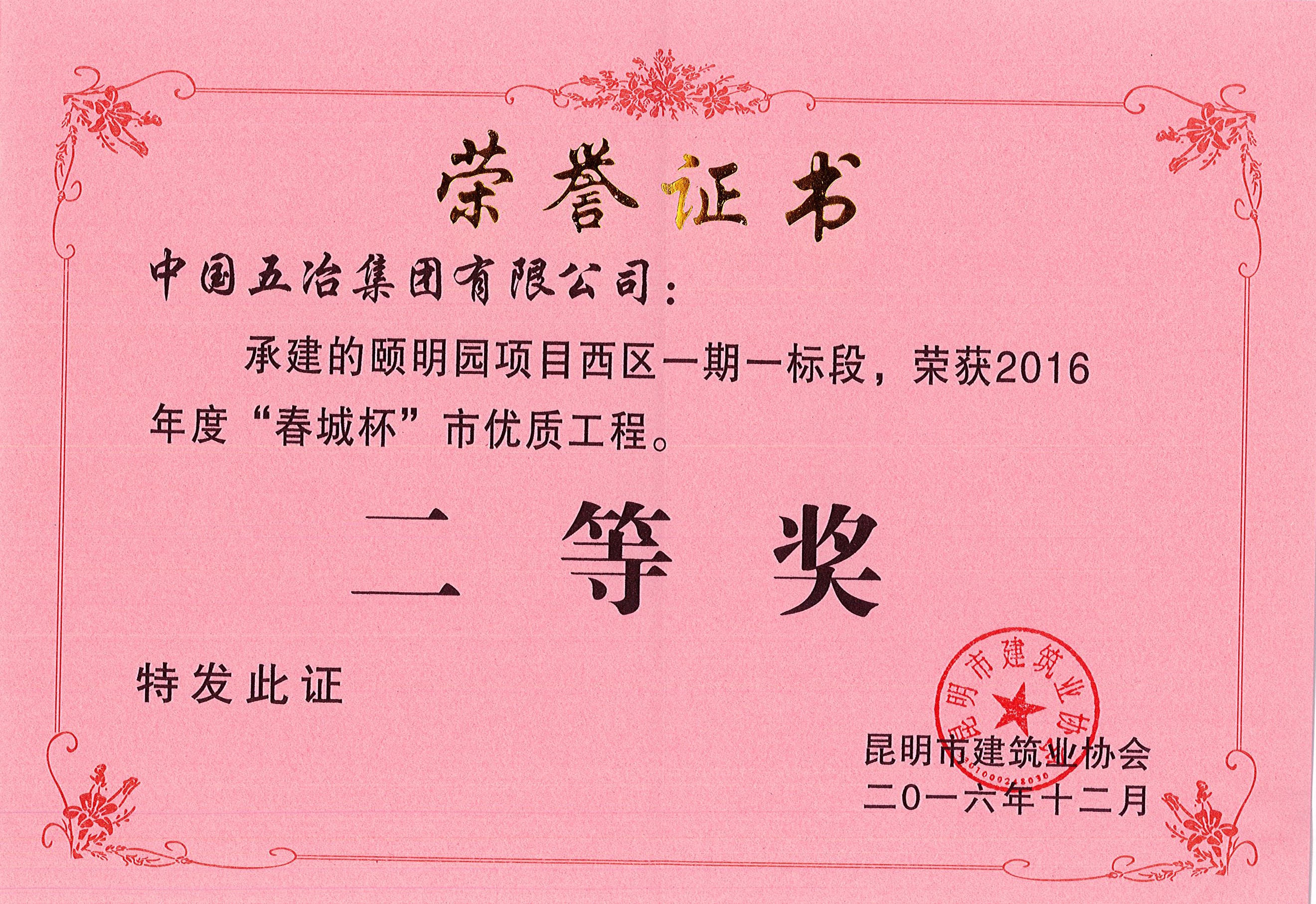 頤明園項目西區(qū)一期一標段—2016年度昆明市春城杯二等獎