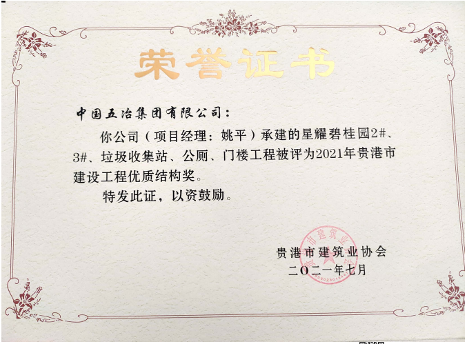 星耀碧桂園2#、3#、垃圾收集站、公廁、門樓工程—2021年貴港市建設工程優(yōu)質結構獎