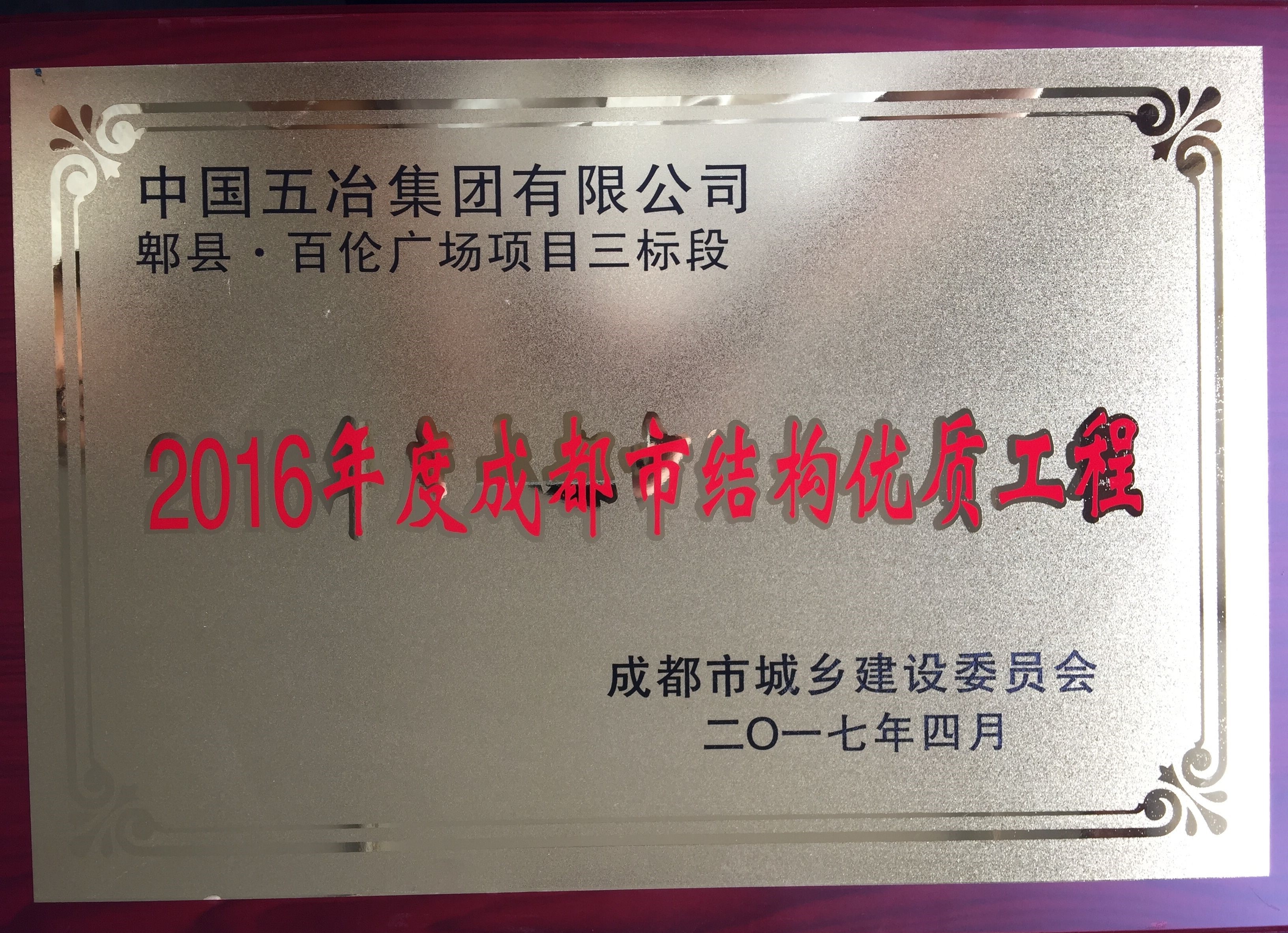 郫縣百倫廣場項目三標段—2016年度成都市結構優(yōu)質工程