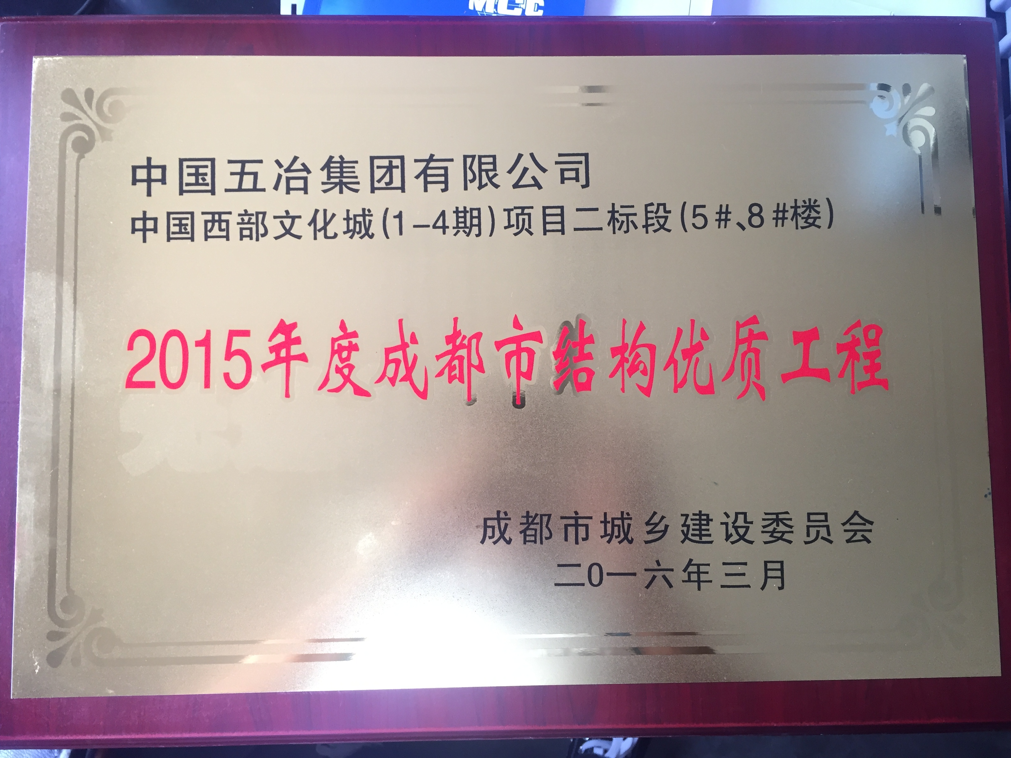 中國西部文化城(1-4期)項目二標段(5#、8#)—2015年度成都市結構優(yōu)質工程