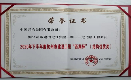 之江實驗一期-之達路工程—2020年下半年度杭州市建設工程”西湖杯“(結構優質獎)