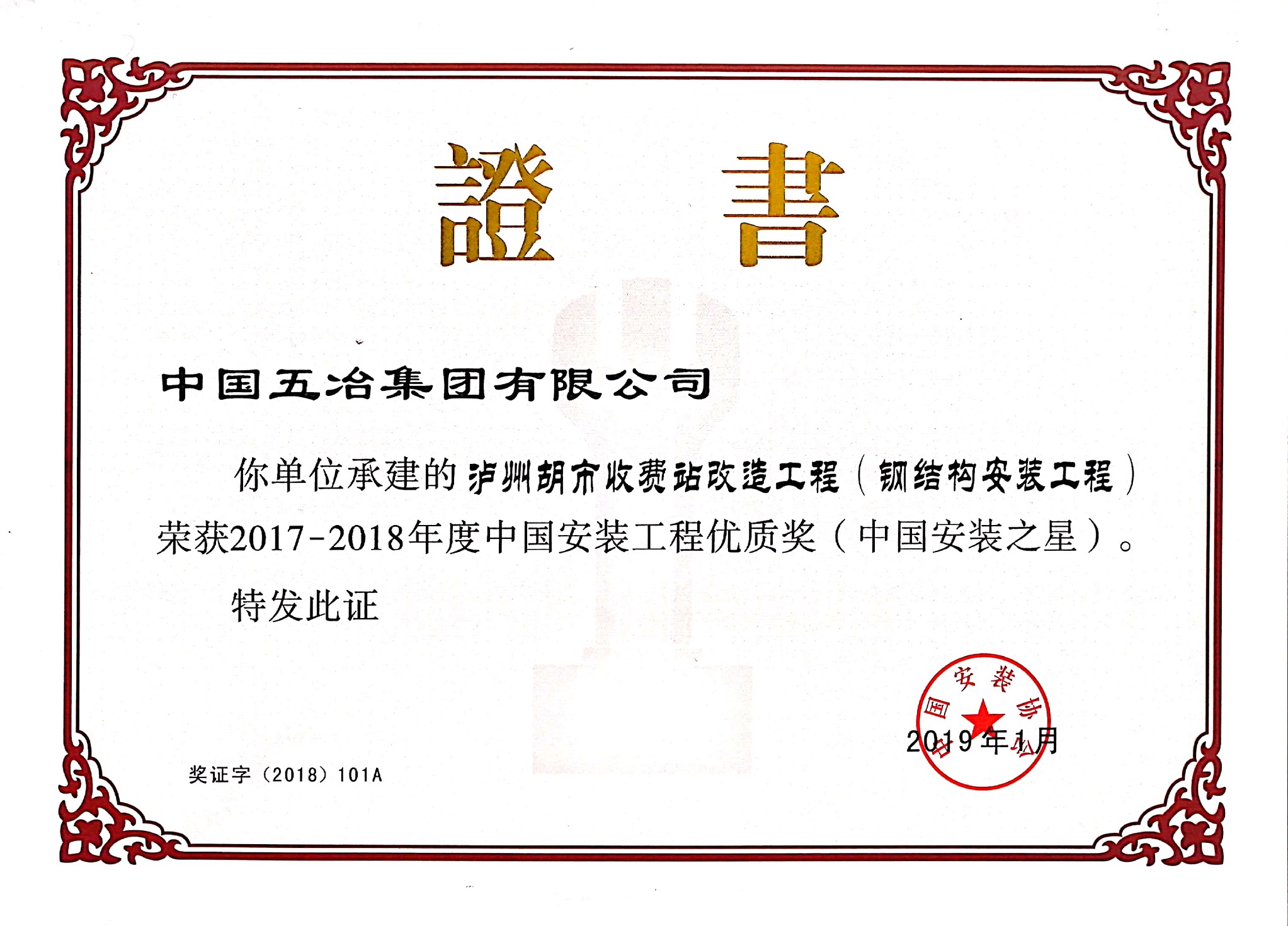 瀘州胡市收費站改造工程(鋼結構安裝工程)-2017~2018年度中國安裝工程優質獎