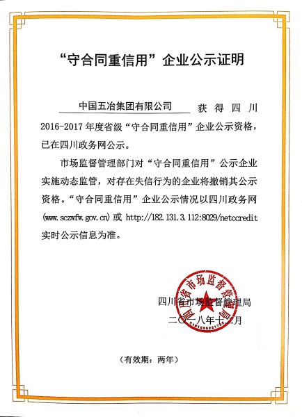 成都市建筑施工企業(yè)信用評價AAA等級證書