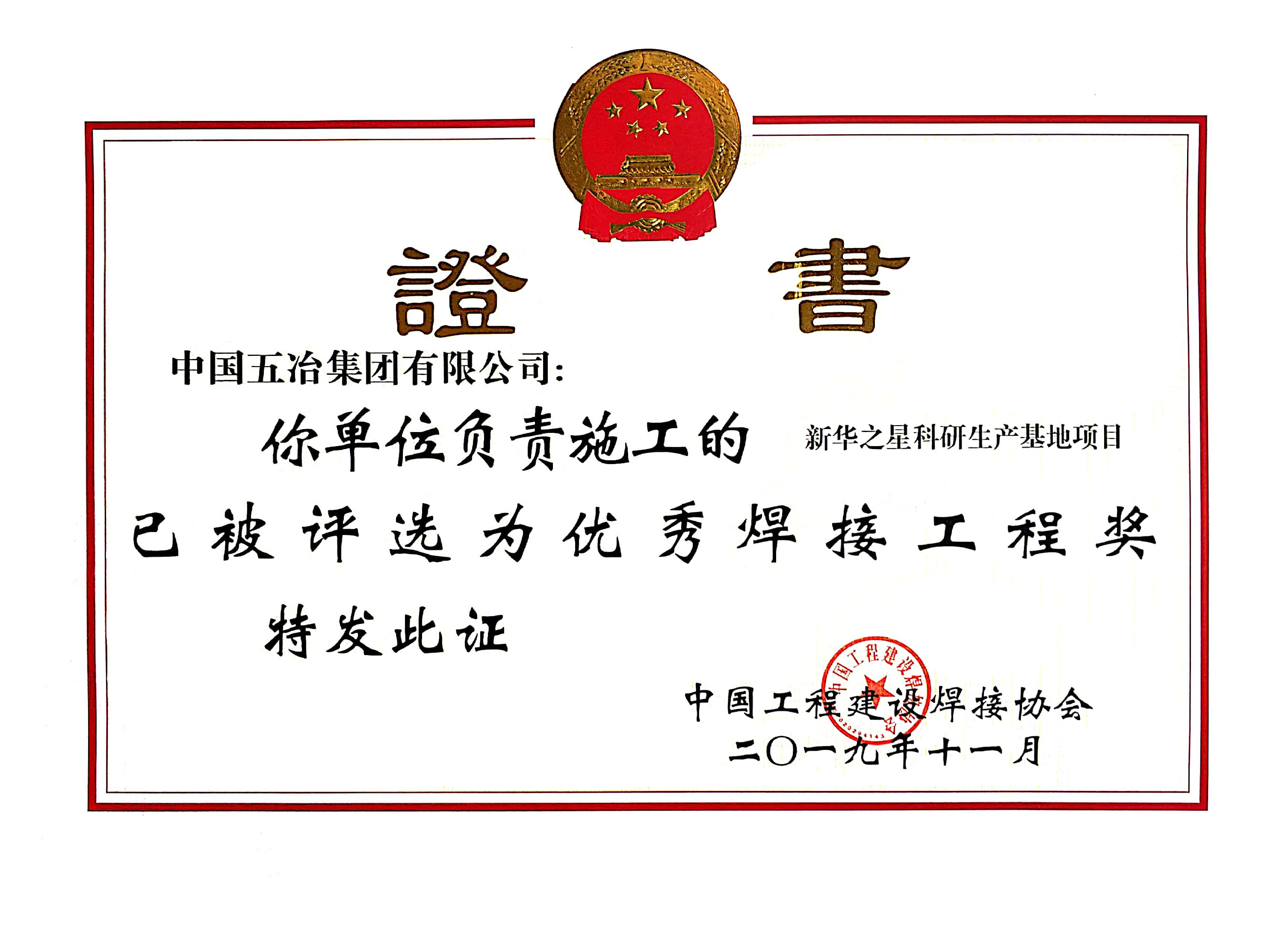 新華之星科研生產基地項目-2019年度全國優秀焊接工程獎
