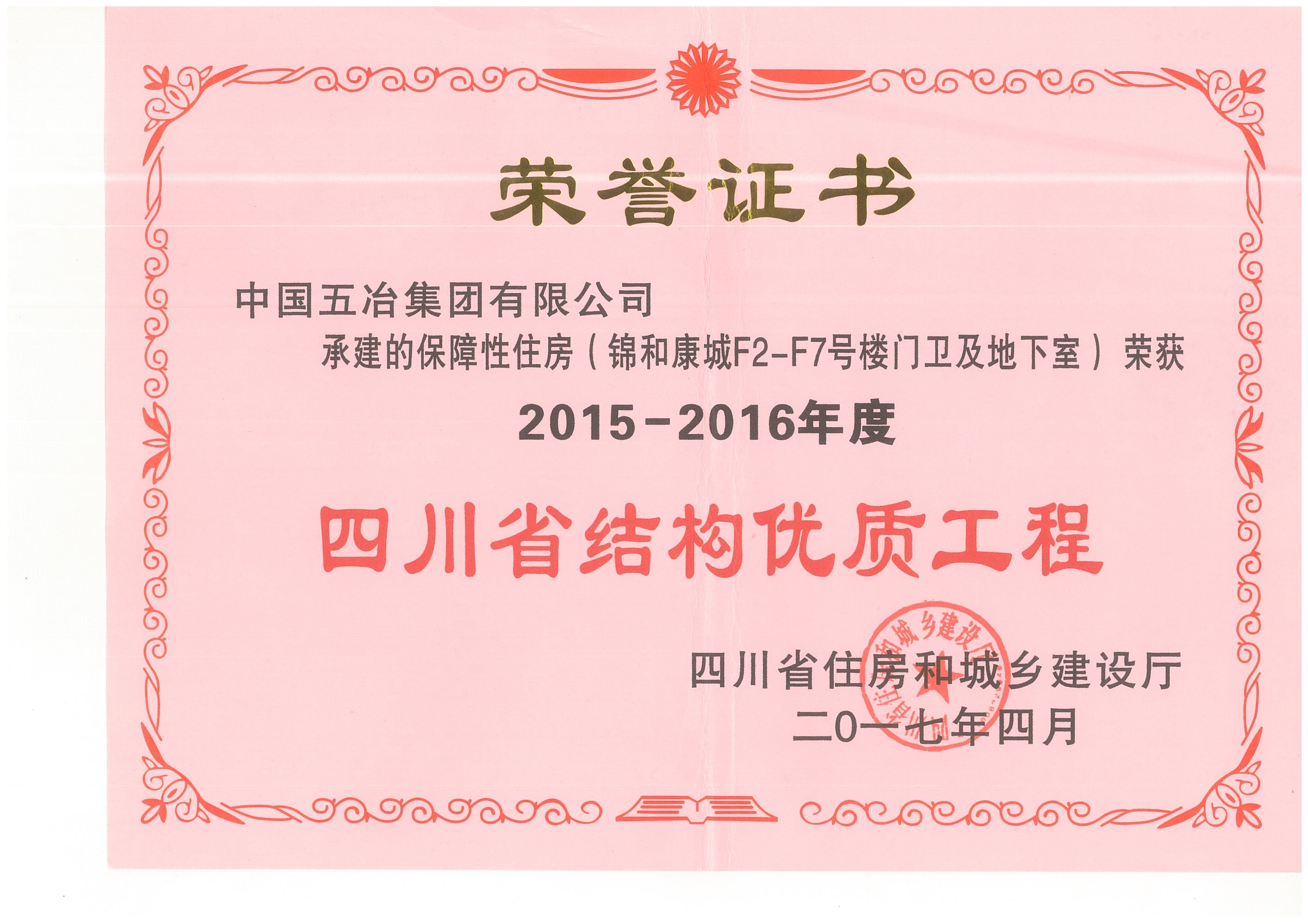 錦和康城F地塊2015-2016年度四川省結構優質工程
