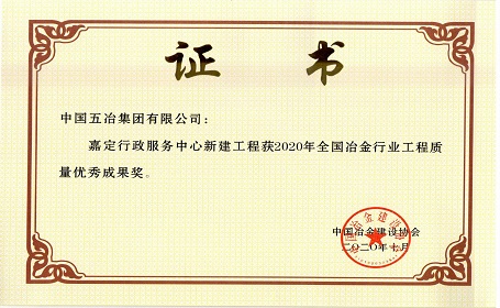 嘉定服務中心項目——2020年全國冶金行業工程質量優秀成果獎