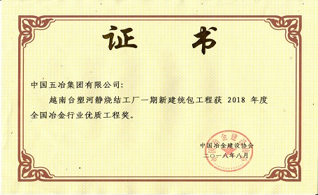 越南臺塑河靜燒結工廠一期新建統包工程——2018年全國冶金行業優質工程獎