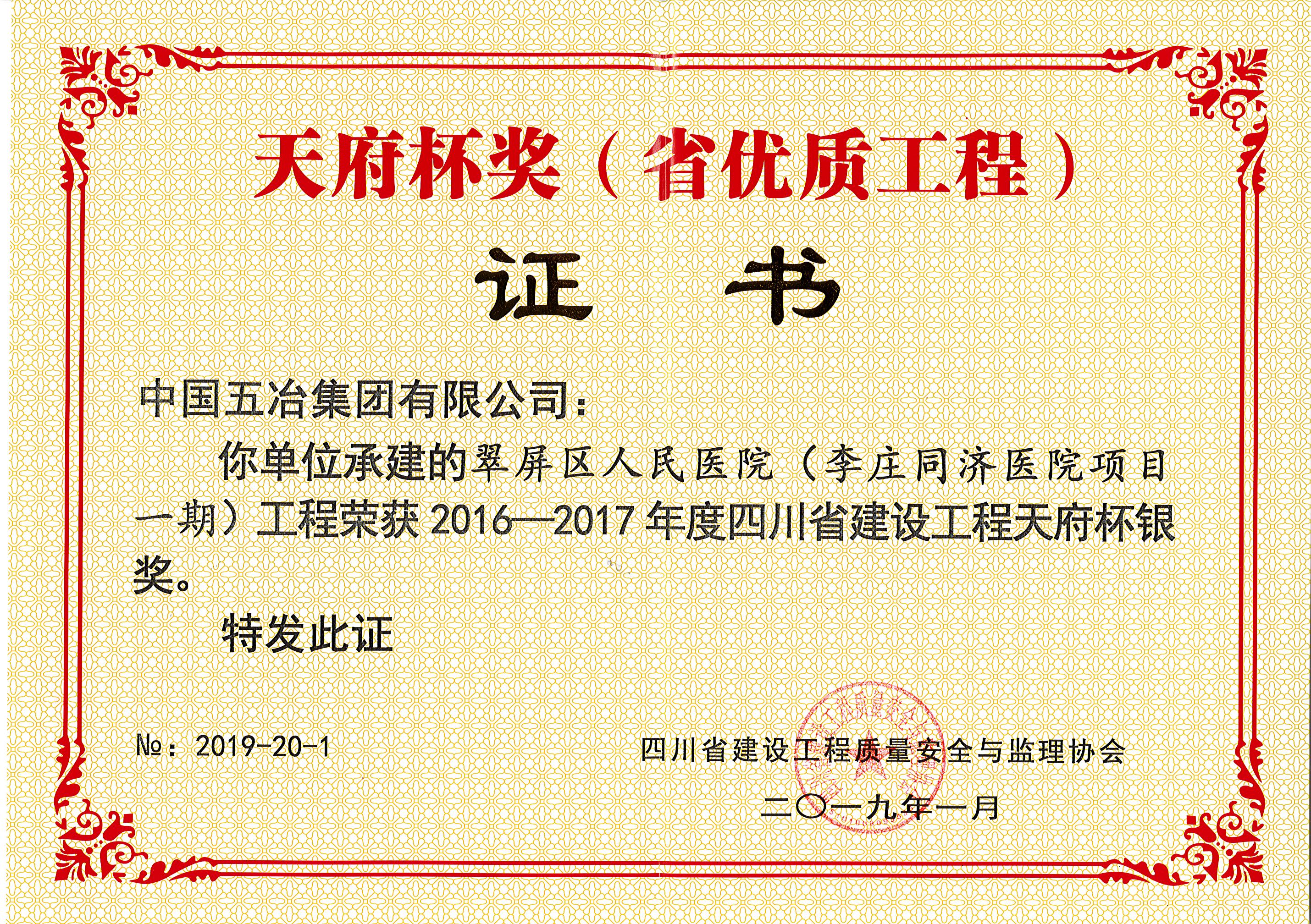 翠屏區人民醫院(李莊同濟醫院項目一期)—2016年-2017年度四川省建設工程天府杯銀獎