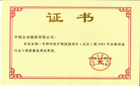 京東亞洲一號鄭州經開物流園項目(北區)——2021年全國冶金行業工程質量優秀成果獎