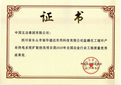 四川省樂山市福華通達農藥科技有限公司鹽磷化工循環產業熱電系統擴能技改項目-2020冶金行業工程質量成果