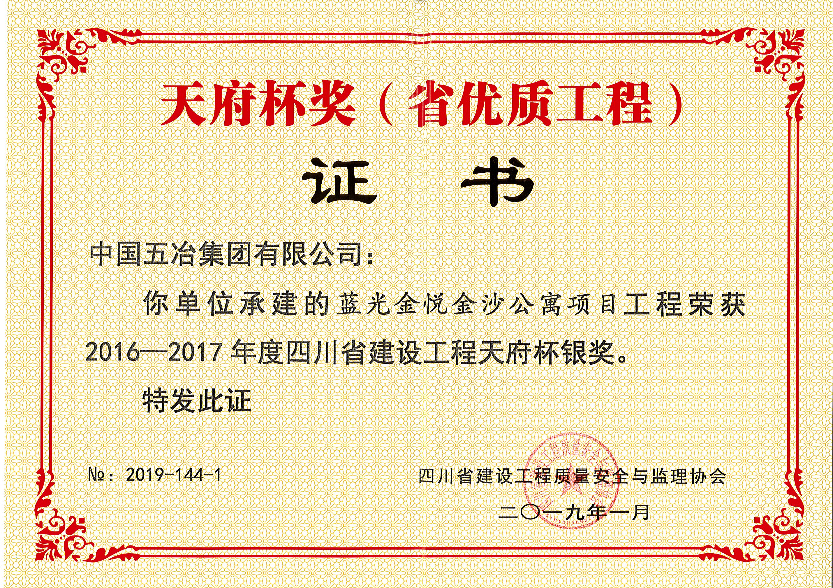 藍光金悅金沙公寓項目—2016-2017年度四川省建設工程天府杯銀獎