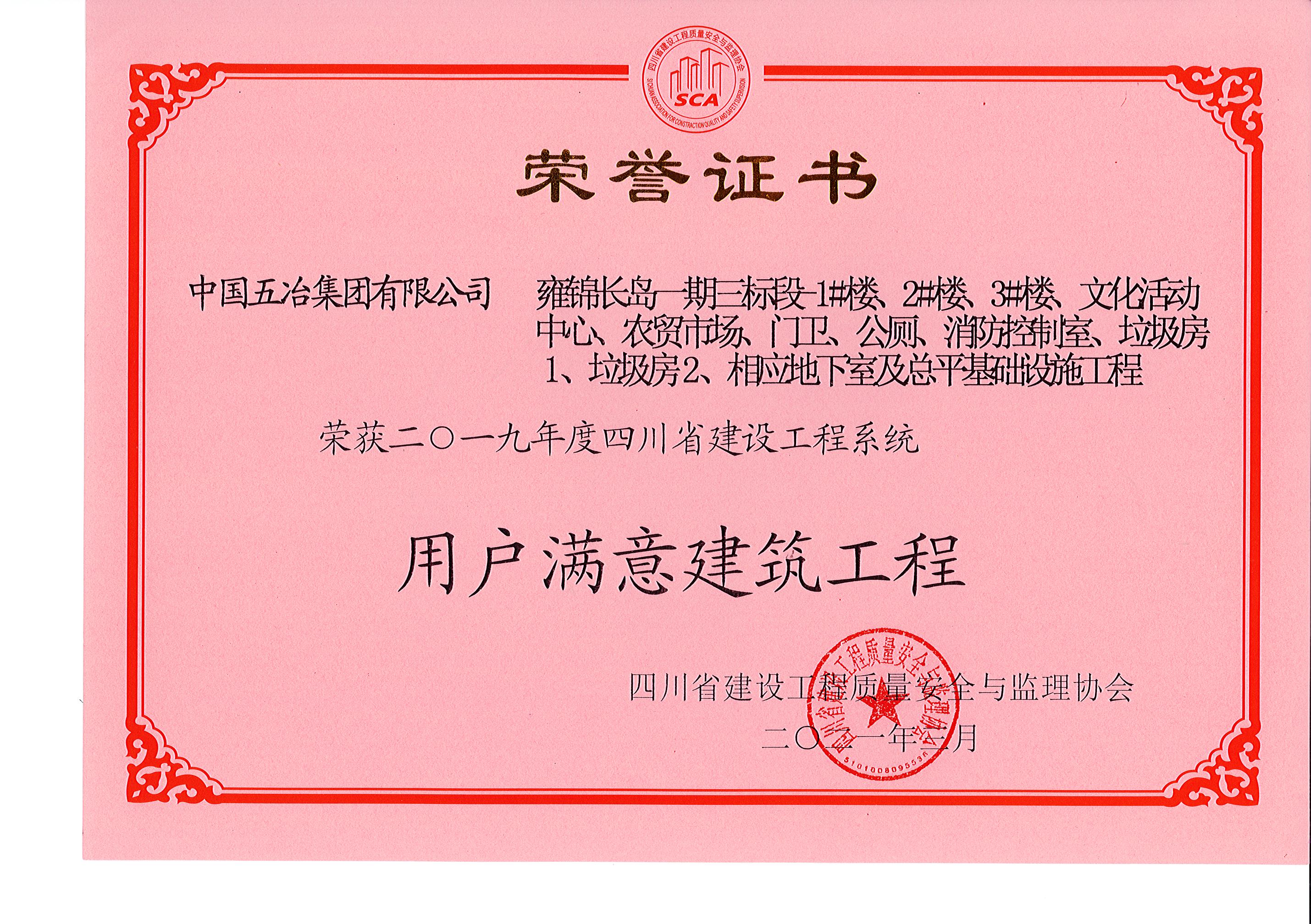 雍錦長島一期三標段1#、2#、3#樓及相應地下室—2019年四川省建設工程系統用戶滿意工程