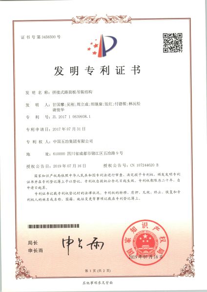 拼接式路面板吊裝結(jié)構 ZL2017106399381