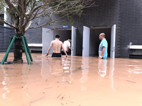 8月24日凌晨1點,樂山再次突發(fā)強降雨,新廣場公廁由于地勢較低,進水嚴重。“我們立即安排較近的新廣場停車場項目部趕去支援該公廁,連夜配送了20個防洪沙袋,并帶領工作人員在新廣場公廁入口構筑防洪堤,確保把強降雨給項目帶來的損失降到最低。”項目負責人說。
