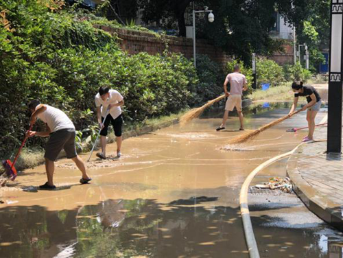 擼起袖子加油干,大家按照職責分工,踴躍投入到淤泥清除、隱患排查等抗洪救災任務中。經過3天的連續(xù)作業(yè)艱苦奮斗,各受災項目的積淤泥沙已基本清理完成。演武街停車場地下室因積水相對嚴重,由于項目部使用的發(fā)電機和抽水泵較小,無法立即抽干積水,在廣元救援隊的支援下,于8月22日完成了演武街停車場地下室的搶險工作。