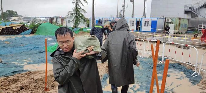五冶中原分公司立即成立防汛應(yīng)急指揮部,對各施工現(xiàn)場排查危險源,進行安全摸底,全面拉起警戒線,成小組建制進行抗洪和道路排水系統(tǒng)巡查。在發(fā)現(xiàn)中原科技城項目工地周邊道路積水上漲,存在積水倒灌進入深基坑的風(fēng)險后,立即調(diào)配公司機關(guān)和項目有生力量,攜帶抽水泵、尖鐵鍬、強光手電、雨靴、雨衣、應(yīng)急干糧等前往項目現(xiàn)場,用沙袋堵住施工大門,加固施工圍擋,防止外部積水倒灌,并對深基坑內(nèi)積水實施抽水作業(yè),搶險持續(xù)10小時,確保了生產(chǎn)現(xiàn)場平安。在此基礎(chǔ)上,五冶中原分公司防汛應(yīng)急指揮部向鄭東新區(qū)管委會發(fā)出抗洪搶險請戰(zhàn)書,與當(dāng)?shù)亟值擂k、建設(shè)單位及時溝通,請求出戰(zhàn)進行抗洪搶險,踐行央企責(zé)任。