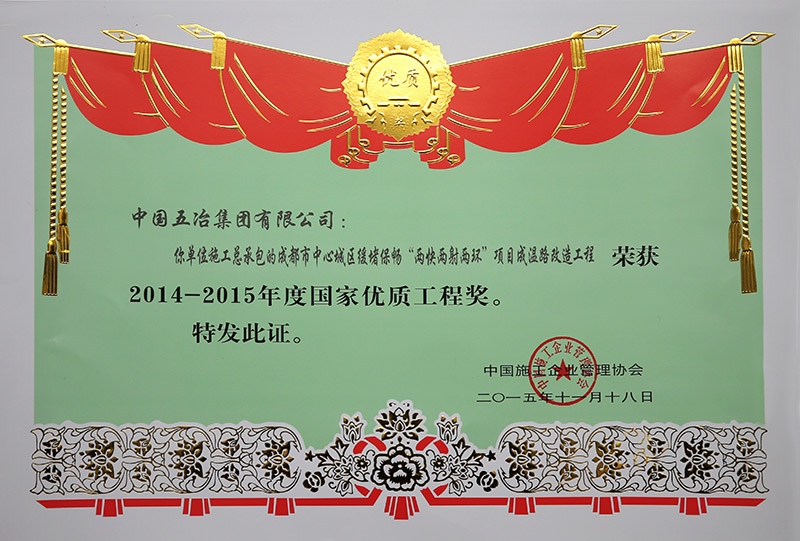 ????2015年12月18日,中國五冶集團成溫路改造工程榮獲2014-2015年度國家優(yōu)質工程銀獎。