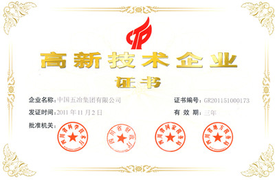 ??2011年11月,中國(guó)五冶集團(tuán)榮獲由國(guó)家科技部核準(zhǔn),四川省科學(xué)技術(shù)廳、財(cái)政廳、國(guó)家稅務(wù)局、地方稅務(wù)局頒發(fā)的“高新技術(shù)企業(yè)”證書。