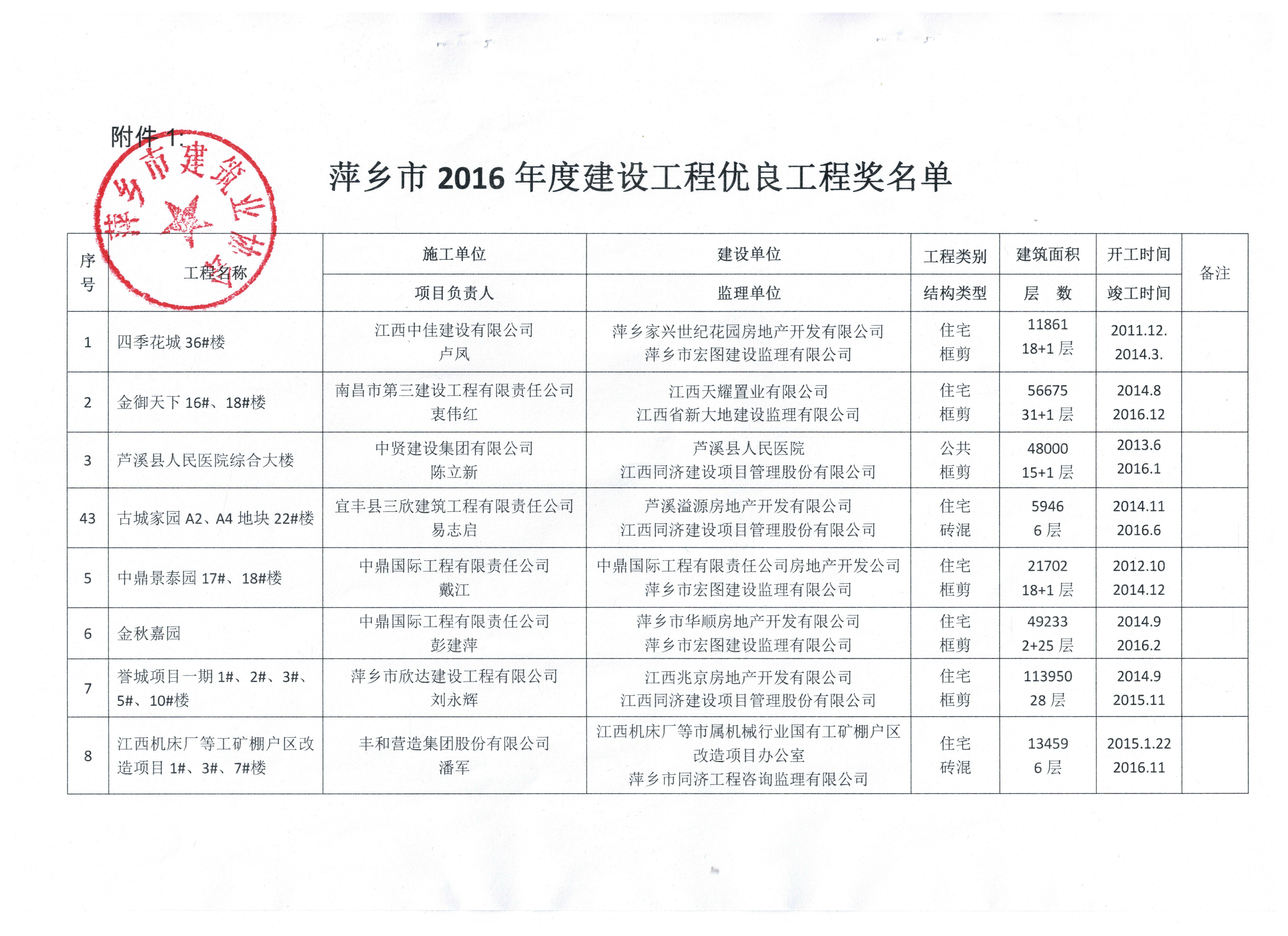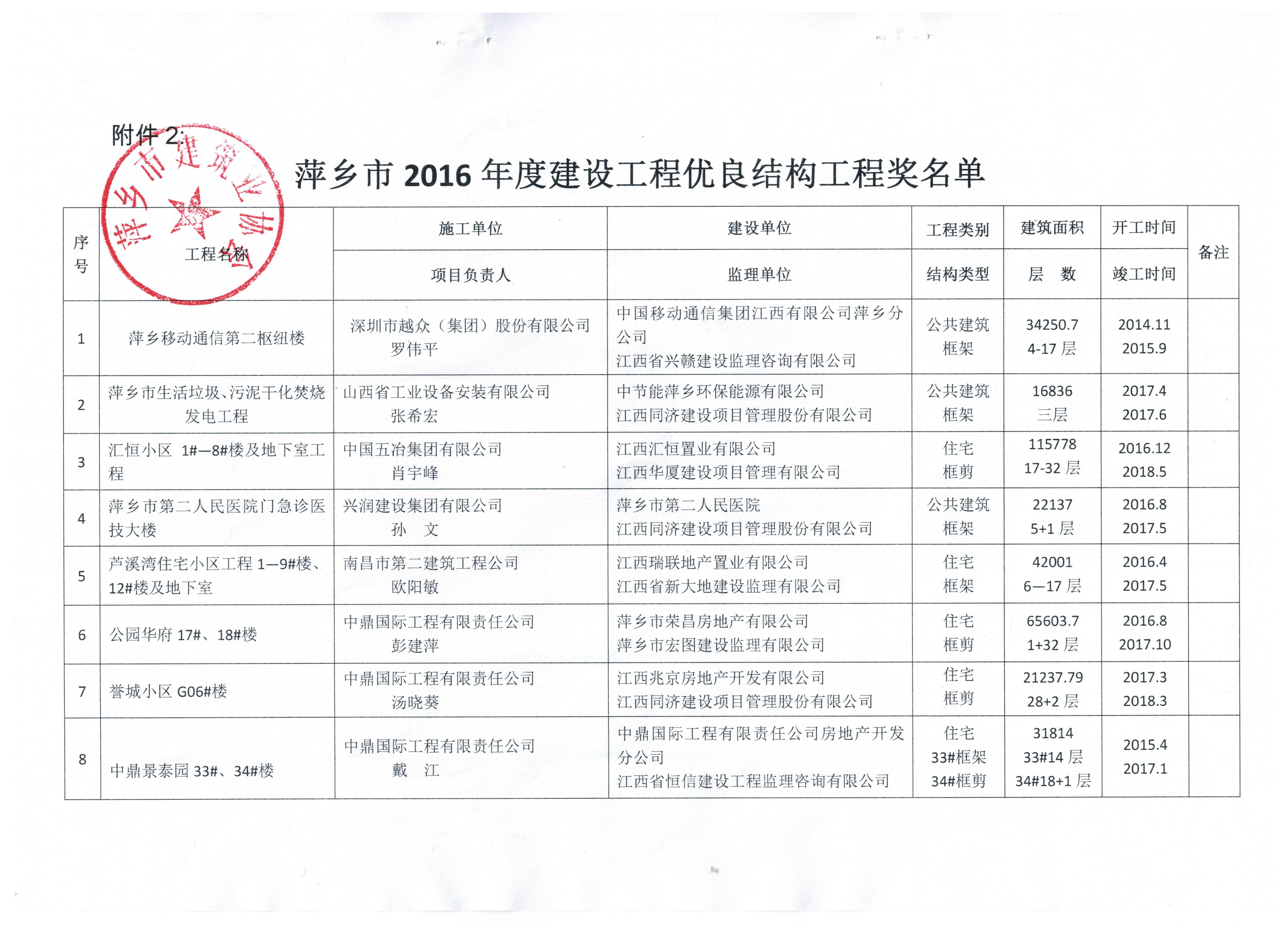 匯恒小區(qū)1#-8#樓及地下室工程榮獲2016年度萍鄉(xiāng)市建設(shè)工程優(yōu)良結(jié)構(gòu)工程獎(jiǎng)