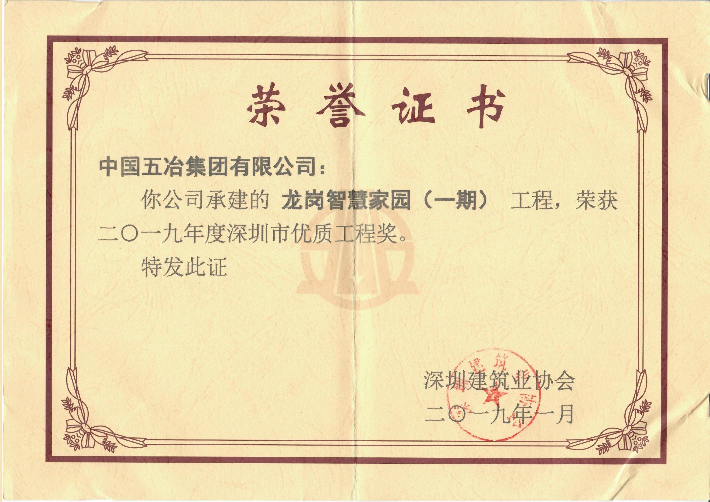 龍崗智慧家園(一期)榮獲2019年度第一批深圳市優質工程獎