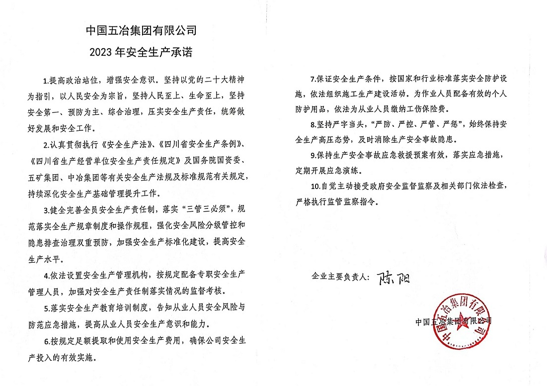 中國五冶集團有限公司2023年安全生產承諾