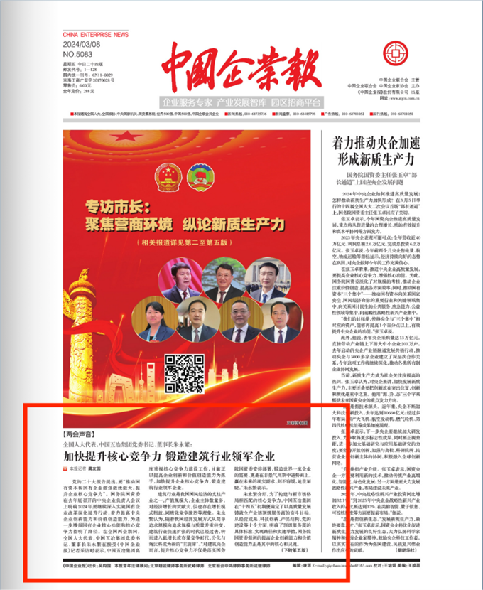 《中國企業報》頭版:加快提升核心競爭力  鍛造建筑行業領軍企業
