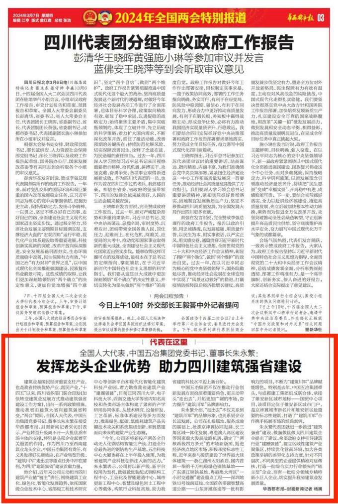 《華西都市報》:發揮龍頭企業優勢  助力四川建筑強省建設
