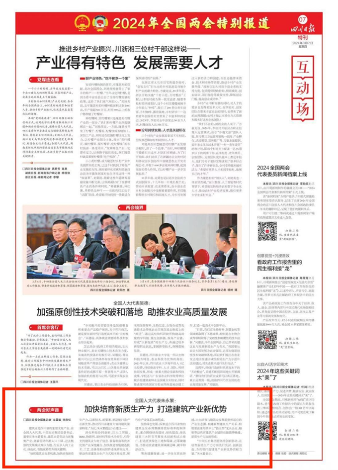 《四川日報》:加快培育新質生產力  打造建筑產業新優勢