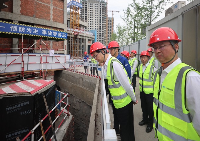 5月3日,“五一”國際勞動節(jié)期間,集團公司黨委書記、董事長朱永繁一行以“四不兩直”方式前往項目現(xiàn)場開展帶班檢查。集團公司領(lǐng)導(dǎo)代小強、張家元,副總經(jīng)濟師李吉輝,項管部、安監(jiān)部、質(zhì)環(huán)部、科技部、辦公室負責(zé)人,一公司、裝飾公司、市政公司、十二公司總經(jīng)理參加檢查。