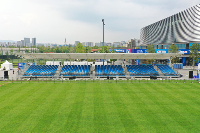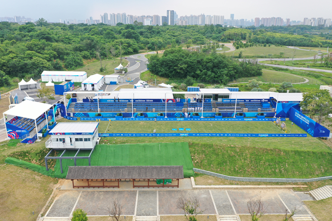 世運會射箭、拔河等比賽觀眾席設置在成都東安湖體育公園中央廣場、青龍湖濕地公園,超1萬名海內外觀眾在這里吶喊歡呼。為支撐世運會觀賽需求,五冶建設者掛圖作戰,倒排工期,全力以赴,攻堅克難,在7天之內完成了964平方米棚蓋建設,覆蓋1060個看臺席位,全部采用裝配式鋼結構施工,最大限度降低對公園生態環境影響,賽后可快速拆除回收利用,做到安全環保。