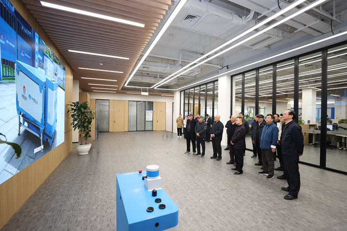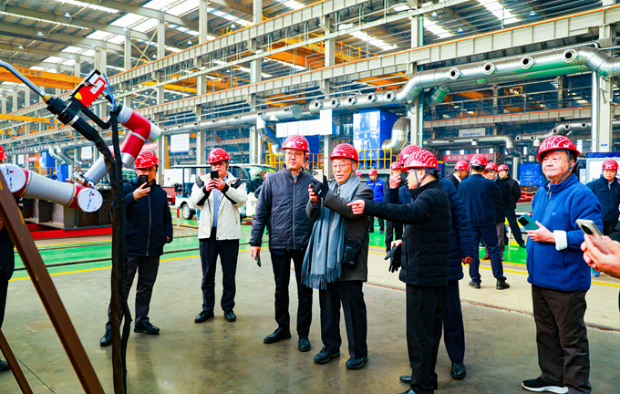在中國五冶集團(成都)建筑科技產業園,退休領導們走進行業領先的裝配式混凝土和鋼結構智造基地,參觀了國內首條全智能鋼結構部件生產線、全自動無人化建筑鋼結構智能生產線和業界集成化程度最高的橋梁、化工能源鋼結構生產線以及工廠全生命周期智慧管控中心等設施,與現場人員就相關工藝流程、質量管控、市場推廣及應用情況進行了交流。在四川綜合節能率最高近零能耗建筑和全省唯一國家級認證零碳建筑——中國五冶集團科技中心,大家觀看了公司自主研發的智慧低碳運維管理系統及智能建筑機器人產品演示,并參觀了由院士等頂級科學家領銜的創新工作室和六大工程技術研究中心,了解公司在科技研發和新質生產力培育等方面的新舉措、新成效。在項目遠程管控中心和公司展廳,大家細致了解了五冶集團數字化企業大腦建設情況,以及打造全產業鏈頂級服務商取得的新業績、新成果。