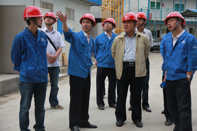 程并強深入現場詳細詢問了工程概況以及目前工程的進展情況,在聽取了工程介紹后,對項目部所作的工作給予了肯定,尤其是在仔細查看了公司自己設計的西南最遠第一懸挑:即懸挑最遠處為27.8米,最大單重18噸的構件后非常滿意。