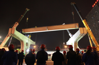 中國五冶集團副總經理田舜、副總工程師唐世榮和相關部門負責人,中國五冶集團路橋工程公司經理袁弘毅等班子人員、成都興城投資集團董事長助理胥亞斌現場督導,經過近一個小時的精心施工,圓滿完成本次吊裝。
