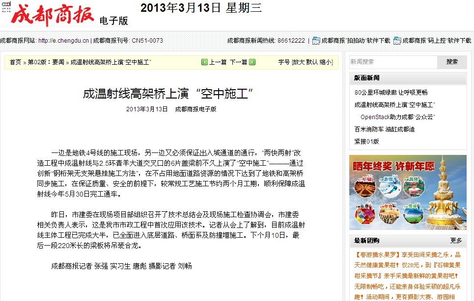 下一篇:成都晚報(bào)報(bào)道:成溫射線將吊裝“巨無(wú)霸”鋼箱梁