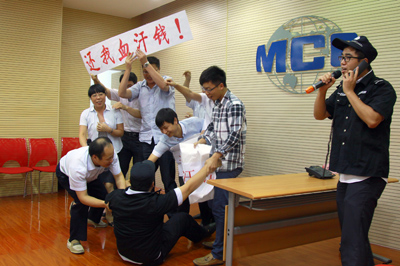 為達(dá)到培訓(xùn)效果,此次培訓(xùn)還設(shè)置兩個(gè)對抗性比賽環(huán)節(jié):一是比學(xué)風(fēng)、比紀(jì)律,通過媒體現(xiàn)場監(jiān)督兩支團(tuán)隊(duì)是否認(rèn)真參會,是否遵守會議紀(jì)律和行為規(guī)范等;二是比業(yè)務(wù)、比管理,首次采用“情景模擬”的形式,由兩個(gè)團(tuán)隊(duì)隨機(jī)抽取題目,分兩個(gè)環(huán)節(jié)比拼市場營銷和突發(fā)安全事故、民工討薪及涉媒應(yīng)急處理的水平。