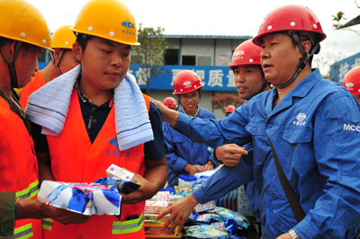 “國家標準規定的安全色有哪幾種?”“紅、藍、黃、綠,四種!”6月9日上午,中國五冶集團安全生產月暨安康杯、青安杯競賽活動啟動儀式在元華路項目部舉行。