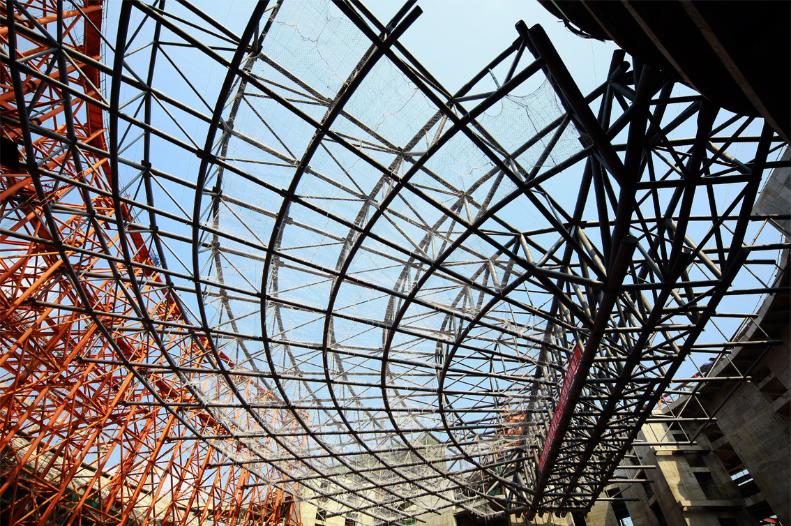為了確保此次大陀螺鋼結構屋蓋的順利提升,中國五冶集團突破了提升技術準備、鋼結構空間彎弧、相貫線焊縫焊接、空間組裝、測量和供度控制、預應力筋張拉、液壓同步提升等數十項困難和技術瓶頸。此次升頂成功后,將陸續進行大陀螺徑向桁架第二段、環向桁架、尾部桁架等后續工程的施工。(曾堯/文 鄧超/圖)