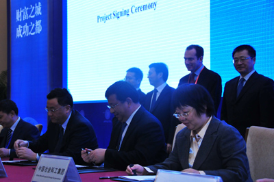 中國中冶副總裁黃丹在簽約儀式上簽字
