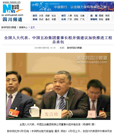 3月7日,全國兩會期間,全國人大代表,中國五冶集團董事長、黨委書記程并強相繼接受了經(jīng)濟日報、中國經(jīng)濟網(wǎng)、新華網(wǎng)和成都商報的采訪。