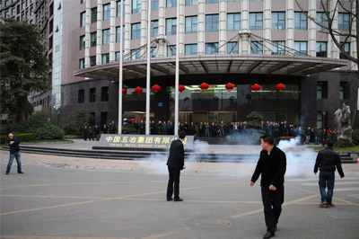 爆竹聲聲震天響,開門大吉迎新年。2月26日,農歷正月初八,是中國五冶集團羊年新春佳節后開工上班第一天。早上8時零8分,五冶大廈外響起了“嘭嘭嘭”的禮花炮仗聲,集團公司領導、員工在爆竹聲中喜迎新年開門大吉,共同祈愿集團公司羊年新氣象。(曾堯文?鄧超圖)