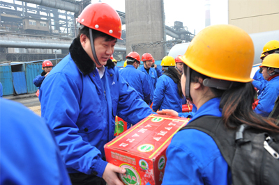 春節(jié)前夕,上海有限公司領(lǐng)導(dǎo)受集團(tuán)公司董事長、黨委書記程并強(qiáng)委托,分別慰問春節(jié)堅(jiān)守崗位的重點(diǎn)項(xiàng)目員工。2月16日上午,有限公司總經(jīng)理徐永鋒,黨委副書記、副總經(jīng)理薛志群,副總經(jīng)理汪忠旭及相關(guān)部門人員一行,慰問了寶鋼一期焦?fàn)t大修改造項(xiàng)目全體員工,并送去了春節(jié)慰問品,真誠感謝并祝福大家節(jié)日快樂。