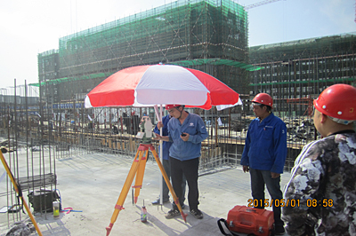 青島即墨藍色新區項目的同事正在烈日下測量樓層主控項線