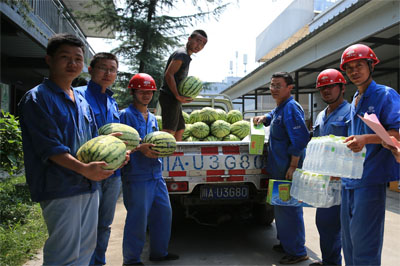 近來,四川地區連日高溫,廣大職工仍堅守在施工一線。7月27日,集團公司工會受集團公司黨政領導委托,在四川地區施工現場開展了高溫慰問送清涼活動,為一線職工送去了慰問信以及涼茶、西瓜、礦泉水等慰問品。首批慰問了新華之星項目、華新美廬項目、藍光COCO國際項目、博覽城項目等地,送上了黨政領導的關愛和慰問。
