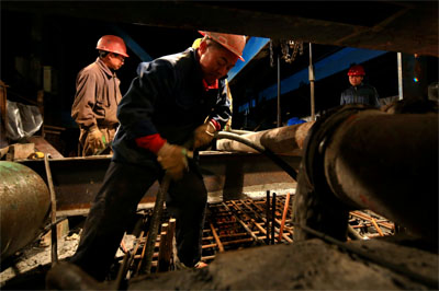 凌晨三點,溫度接近零度時工作人員開始掛籃懸澆作業
