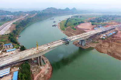 省道405線渠縣過境段渠江三橋及引道工程經(jīng)省發(fā)改委立項(xiàng),是渠縣規(guī)劃建設(shè)的重要城市道路連接工程,也是渠縣確定的23個(gè)重點(diǎn)項(xiàng)目之一。項(xiàng)目設(shè)計(jì)路線起于渠縣文峰大道南路處連接國道318線,向北繞東區(qū)東側(cè)、自東南向西北行進(jìn)跨越渠江,與南大梁高速公路北城快速通道相連。該項(xiàng)目全長10.9公里,采用一級(jí)公路設(shè)計(jì),雙向6車道,設(shè)計(jì)時(shí)速每小時(shí)60公里,項(xiàng)目總投資約11.38億元。工程自2014年3月開工建設(shè)以來,項(xiàng)目部克服了種種困難,整個(gè)大橋提前6個(gè)月順利實(shí)現(xiàn)合龍。項(xiàng)目建成后,將刷新中冶集團(tuán)目前特大橋梁單跨最大跨度的紀(jì)錄,給兩岸群眾出行帶來極大的方便,對(duì)于完善渠縣城市交通網(wǎng)絡(luò)、推動(dòng)川東區(qū)域發(fā)展、提升達(dá)州城市品位,促進(jìn)全市經(jīng)濟(jì)社會(huì)又好又快發(fā)展,具有重要的現(xiàn)實(shí)意義和深遠(yuǎn)的歷史意義。(文濤)