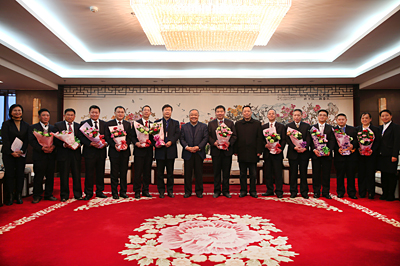 ? ? ? ?下午六時許,集團公司董事長、黨委書記程并強在29樓會議室親切接見了勞模,與勞模們一一握手致意并合影留念。隨后,大家在一片融洽、輕松的氛圍中進行了交流談話,程并強認真詢問了每位勞模的工作近況,詳細了解了他們的工作經歷和感受。談話中,程并強介紹了集團公司近年來的發展概況和2015年集團公司主要經濟指標完成情況,指出集團公司取得的眾多成績,與廣大模范和先進人物的辛勞付出、忘我工作、無私奉獻離不開,與全體員工的辛勤工作分不開,并代表集團公司對大家表示衷心感謝!寄語大家要在現有的工作崗位上,充分發揮作用,用行動感染和激發每一位勞動者的工作干勁,帶領培養出一批愛崗敬業的團隊,為集團公司轉型、提升、擴張發展做出更多更大的貢獻,并祝福大家在未來的工作中取得更多更好的成績;同時,要求相關部門進一步宣傳先進模范,弘揚正能量,帶動廣大員工;要進一步關心關愛勞模,關注先進典型,形成相關幫扶的長效機制,鼓勵大家成長、提升。