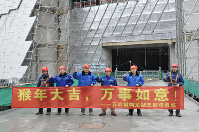 猴年新春來臨之際,也正是上海五冶鋼構(gòu)公司“龍湖虹橋北區(qū)鋼結(jié)構(gòu)連廊制安項目”履約的關(guān)鍵時期。作為項目部員工,雖然我們不能與家人團(tuán)聚,但能為公司的轉(zhuǎn)型、提升、擴(kuò)張發(fā)展盡自己的綿薄之力,卻足以讓我們自豪,我們愿與企業(yè)風(fēng)雨同舟,共創(chuàng)美好明天!在此,代表項目部全體堅守崗位的員工,向公司廣大員工及家屬致以新春祝福,也祝愿集團(tuán)在新的一年里,能蒸蒸日上,再鑄輝煌!